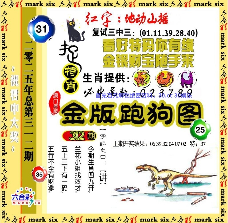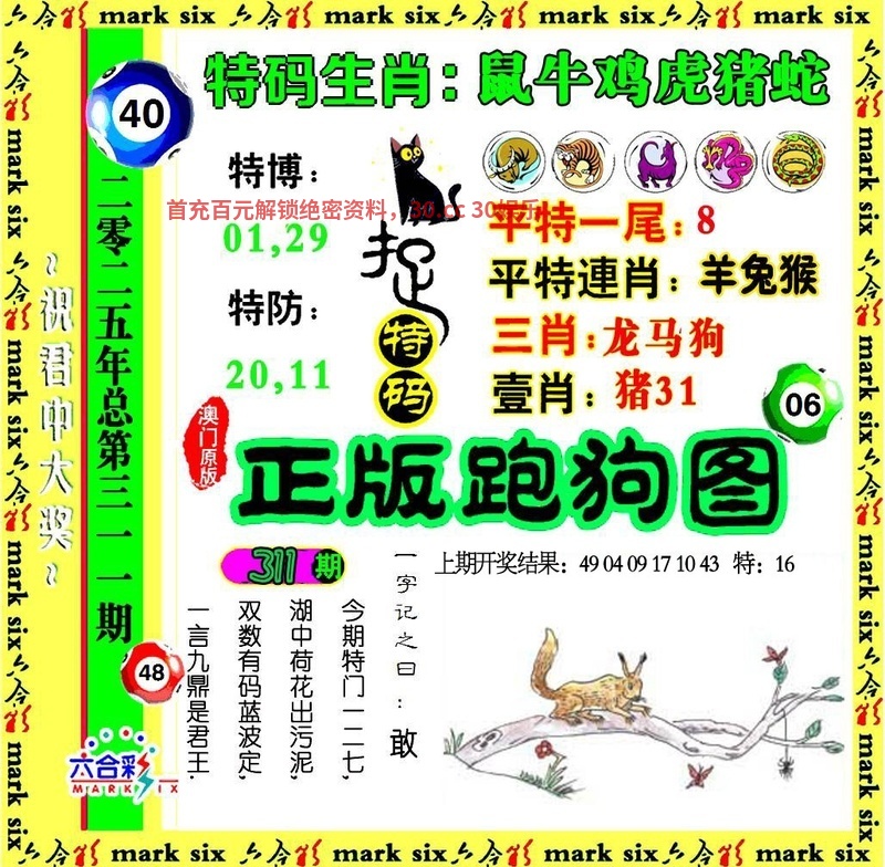 309期:【杀三肖】【猪牛狗】开:鼠06准